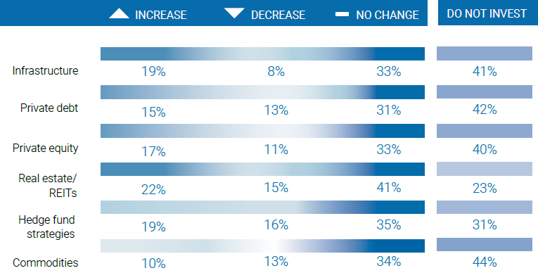 - Ils prévoient d’augmenter leur allocation aux solutions de placement alternatives.