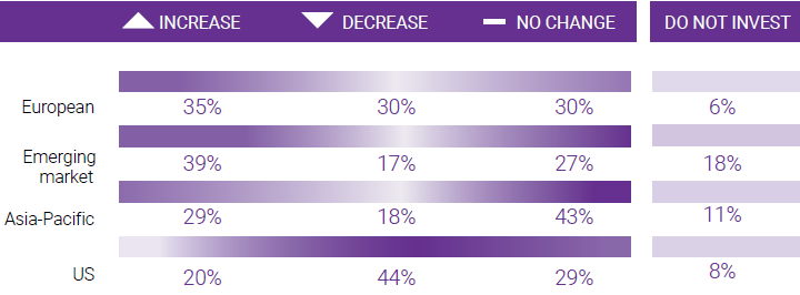 Les sélectionneurs de fonds sont préoccupés par la hausse des taux d’intérêt, la volatilité accrue des marchés et les pressions exercées sur le rendement par des facteurs tels que l’assouplissement quantitatif des banques centrales, les perturbations géopolitiques et les guerres commerciales. Les trois quarts des personnes interrogées estiment que l’alpha est de plus en plus difficile à générer à mesure que les marchés deviennent plus efficients, et qu’ils sont prêts à payer des frais plus élevés pour atteindre une performance supérieure. Ils conviennent aussi que l’environnement de marché en 2019 restera certainement favorable à une gestion active des portefeuilles.