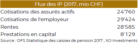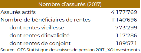 La prévoyance joue en Suisse un rôle extrêmement important. Avec plus de 1600 caisses de pensions, le volume d’actifs dépasse les 900 milliards de francs et ce ne sont pas moins de 4 millions d’assurés qui sont intégrés au système. Les valeurs échangées chaque année au sein de ces institutions restent énormes. Les employeurs injectent près de CHF 30 milliards sous forme de cotisations. Les assurés 25 milliards.
