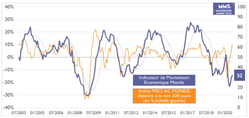 Bien sûr, rien n’est gagné et l’incertitude est toujours bien présente. Après une chute historique de l’activité au second trimestre, le rebond n’a pas suffi à redonner le sourire aux économistes. Nos indicateurs MMS Montpensier Market Scan de Momentum économique en témoignent, il y a du mieux mais l’élan n’est pas complètement revenu : sur une échelle de 0 à 100, le MMS Monde plafonne à 32, la zone euro à 33 et les Etats-Unis à 28. Nous revenons certes de loin après des creux historiques inférieurs à 10 pour certains pays, mais seule la Chine atteint le niveau de 50.