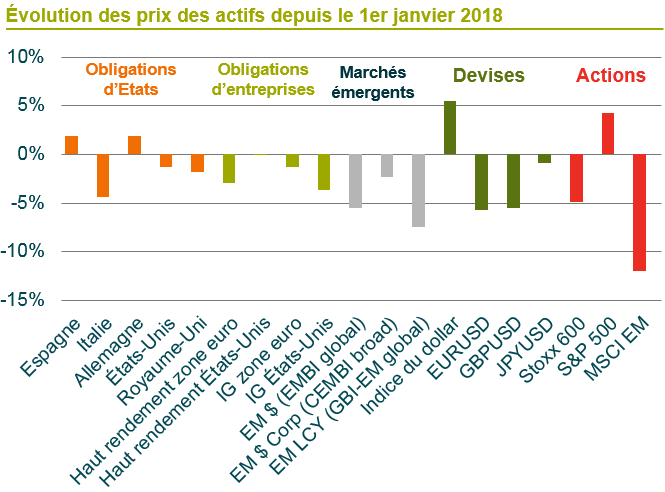 Sommes-nous donc proches du pic de hausses de taux/«tapering» de la Fed? Si c’est le cas, on pourrait considérer que la correction observée en 2018 sur presque toutes les classes d’actifs est bientôt terminée, et que les emprunts d’État et les obligations d’entreprise apporteront de nouveau bientôt de la valeur. Sur ce dernier point, il se peut que nous soyons dans un premier temps confronté à un ralentissement économique.