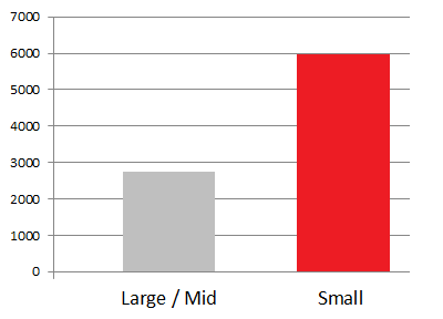 Ces entreprises sont également très nombreuses. Si l’on divise l’indice susmentionné en fonction de la taille des sociétés, on constate que le MSCI AC World Small Cap rassemble 6 154 valeurs, alors que le MSCI AC World (grandes et moyennes capitalisations) en compte 2 499.