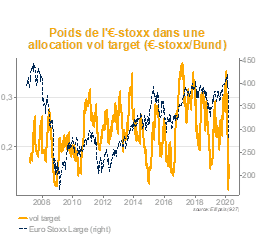 Un certain nombre d’acteurs leveragés – hedge funds ou assimilés – ont entrepris depuis plusieurs semaines la liquidation contrainte de leurs positions. Ce processus, à l’origine d’un cercle vicieux de la baisse, est, de notre point de vue, déjà bien engagé et la pression vendeuse qui en a résulté va progressivement diminuer. Il en va de même des stratégies «risk parity», dont l’allocation en actifs risqués a été diminuée par l’explosion de la volatilité.