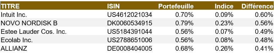 5 titres les plus surpondérés du portefeuille (source: amLeague, données au 28.02.2018)