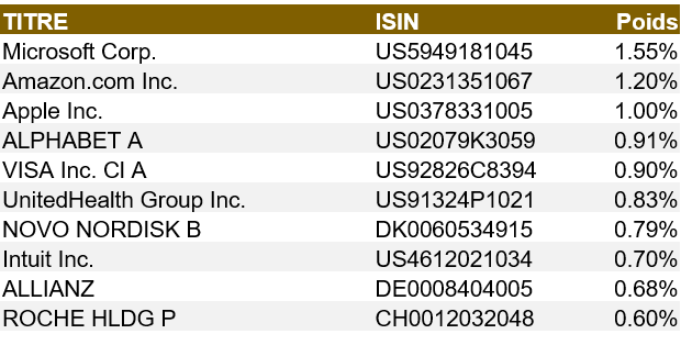 10 principales positions (source: amLeague, données au 28.02.2018)