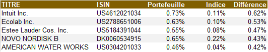 5 titres les plus surpondérés du portefeuille