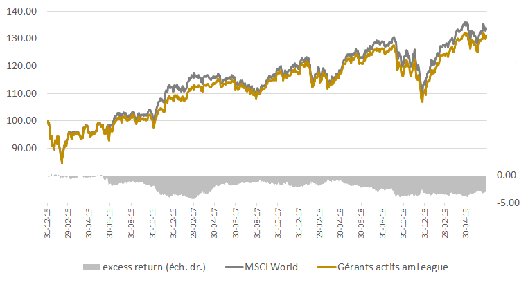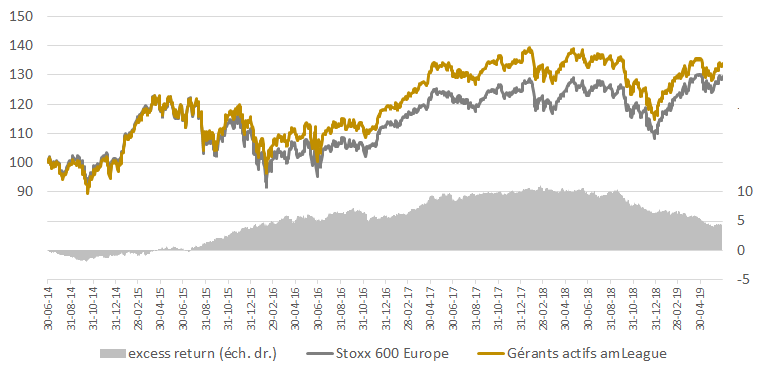 Performances des gérants actifs en actions européennes et actions globales au cours des 6 premiers mois de 2019.