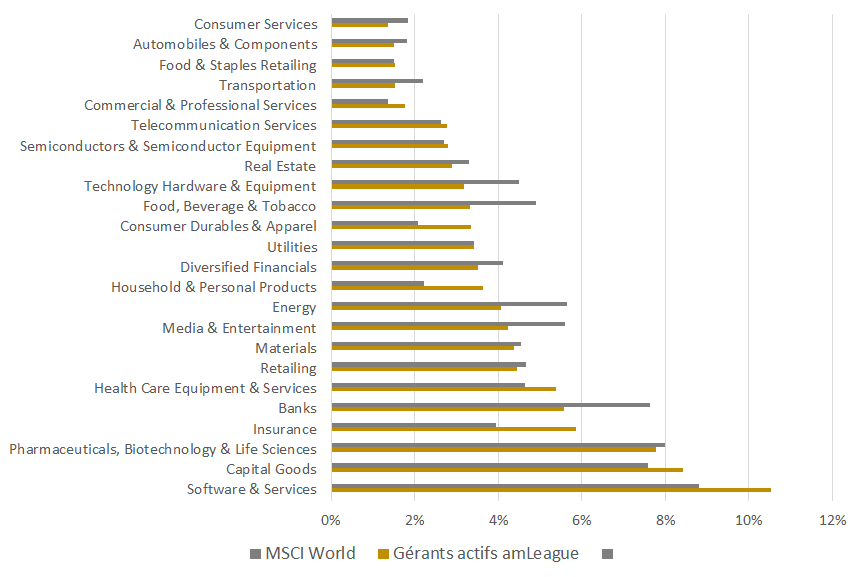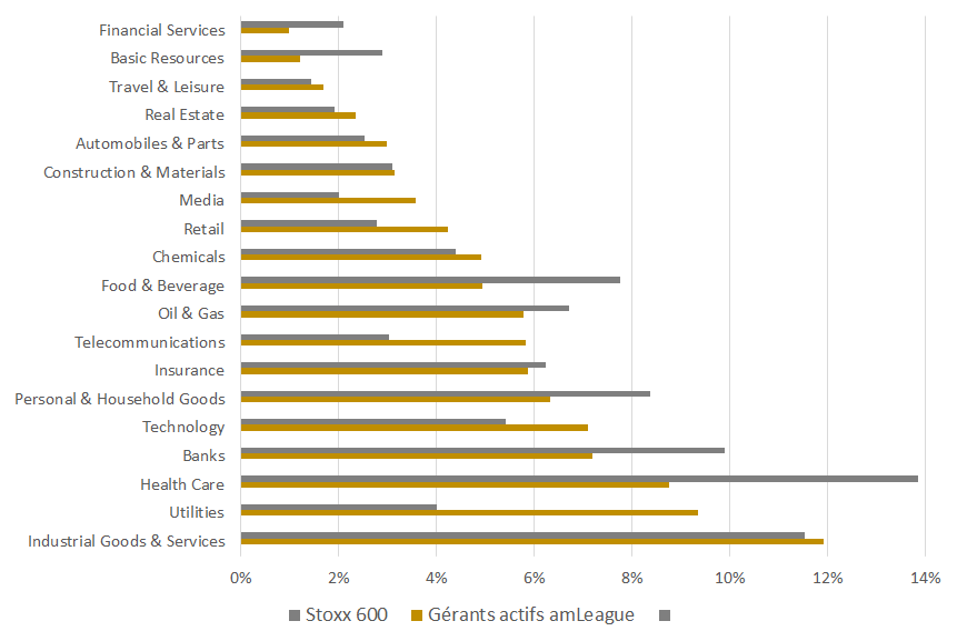 Au niveau des paris sectoriels, ceux-ci restent beaucoup plus marqués que sur le mandat global, avec par exemple la forte surpondération des utilities ou encore la forte sous-pondération de la santé ou de l’alimentation.