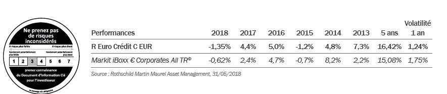 E.P. : Rappelons que R Euro Crédit est majoritairement investi dans des obligations d’entreprises privées. Notre exposition à la Zone euro s’élève actuellement à 60%. Nous privilégions les obligations Investment Grade, qui constituent au minimum 80% des actifs du portefeuille, avec une préférence marquée pour les notations BBB. Nous complétons cette allocation avec une exposition sur les marchés High Yield et non notés. En termes sectoriels, nous favorisons les financières en raison de leur surperformance en période de hausse de taux et de pentification de la courbe, mais aussi car elles profitent de fondamentaux renforcés suite aux pressions réglementaires. Avec actuellement plus de 250 titres, notre portefeuille bénéficie d’une large diversification permettant de réduire les risques spécifiques de défaut.