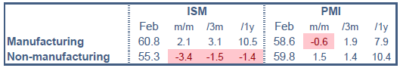 La situation sanitaire continue de s’améliorer (baisse du nombre de cas, hausse de la vaccination), et même plus vite que les prévisions les plus optimistes d’il y a quelques semaines. Les restrictions se lèvent petit à petit, ce qui devrait améliorer le moral des consommateurs d’autant que le revenu va bénéficier d’un nouveau coup de fouet budgétaire d’ici peu. Les soubresauts récents des marchés de capitaux sont pour l’instant sans effet sur la richesse des ménages. L’indice de l’Université du Michigan pour mars est attendu le 12. Sans oublier que les ménages ont toujours un biais qui surestime l’inflation véritable, il sera intéressant de voir à quelle vitesse leurs anticipations d’inflation continuent de se redresser.