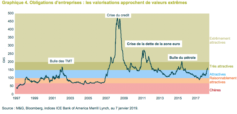 Pour autant, les marchés demeurent extrêmement pessimistes et nous avons observé d’importantes sorties de capitaux au sein des actifs risqués, ce qui donne à penser que la plupart des risques sont désormais intégrés dans les cours. Les valorisations sur les marchés du crédit ont renoué avec des niveaux attractifs (Graphique 4).