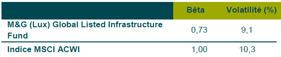 • Un faible bêta et une volatilité inférieure à celle des actions internationales, ainsi qu’une protection lors des périodes de baisse des marchés actions, constituent les principaux attraits des actifs d’infrastructure.