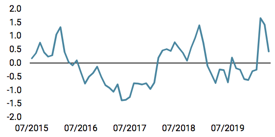 La prudence se reflète également dans la valorisation des actifs. L’or, les rendements des obligations souveraines, les performances des actions en dehors des secteurs de la santé et de la technologie chantent tous la même chanson: «Nous ne croyons pas à une reprise en V». C’est exactement la raison pour laquelle nous pensons que le positionnement des investisseurs pourrait changer radicalement. Les «bonnes nouvelles» ou du moins «la fin de la tendance négative» ne sont pas du tout prises en compte dans la plupart des actifs financiers. Plus important encore, ce changement pourrait être amplifié par des facteurs techniques. Si la tendance actuelle se poursuit, la normalisation de la courbe VIX, de «backwardation» au «contango», la normalisation du marché interbancaire aux Etats Unis et les performances à 12, 6 et 3 mois des actifs risqués vont déclencher un repositionnement important des stratégies systématiques et créer la poussée haussière requise pour faire passer le sentiment du marché du «cash est roi» à la «peur de rater le rallye». De plus, les positions cash atteignent des niveaux records, améliorant à la fois l’horizon et le rapport risque/rendement de la reprise du risque.