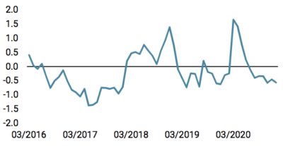 L’inflation semble également augmenter dans le monde émergent, notamment en Chine et au Brésil. Il y a deux raisons principales à cela, toutes deux essentielles dans le contexte actuel. Premièrement, les coûts de production ont récemment augmenté. Il s’agit moins de l’impact des prix du pétrole que de l’impact de la hausse des métaux industriels. Depuis son point bas en mars 2020, le prix du cuivre a augmenté de 70%, des niveaux inégalés depuis 2017. Le «pricing power» étant transféré aux producteurs, cette augmentation des coûts de production n’est pas une bonne nouvelle: elle signifie au fond des prix plus élevés à moyen terme, si la demande reste forte. L’inflation alimentaire est également en plein essor: à titre anecdotique, le prix du soja et du riz a fortement augmenté en janvier (+5%), tandis que l’ail (un ingrédient largement utilisé dans l’alimentation asiatique) a vu son prix grimper de 15% depuis son plancher de 2020. Là encore, la demande est en hausse et l’offre est limitée. Bien que nous n’attachions normalement que peu d’importance à l’inflation alimentaire dans les pays émergents en termes d’investissement, nous pensons que c’est une indication supplémentaire des limites actuelles de l’offre et des risques que cela représente pour l’inflation future.