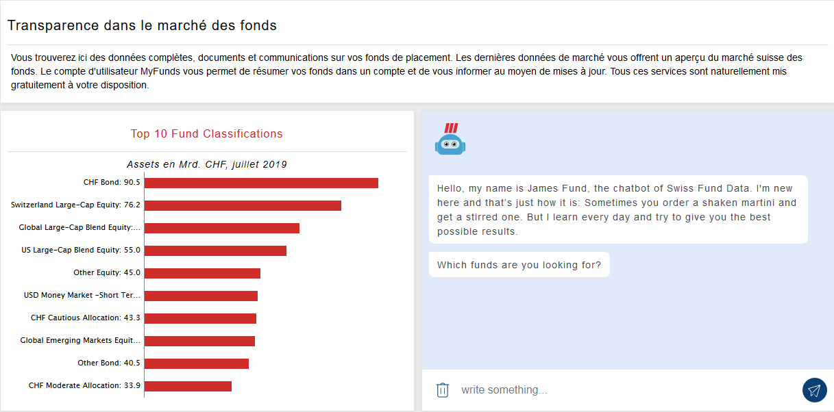 Les utilisateurs de la plateforme www.swissfunddata.ch disposent ainsi dès à présent de trois nouveaux outils, à savoir le Chat Bot, la «Recherche détaillée» (anciennement Recherche avancée) et la «Recherche rapide» (anciennement Recherche simple) pour rechercher les fonds souhaités.