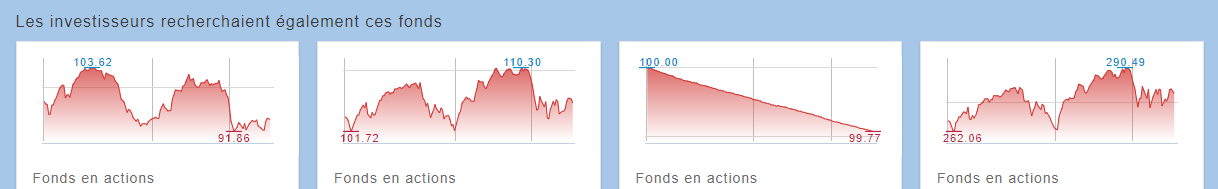 Les résultats de la recherche sont systématiquement complétés avec les produits consultés par les autres utilisateurs (intelligence distribuée) ayant appliqué des paramètres identiques ou similaires («Les investisseurs recherchent également ces Fonds…»).