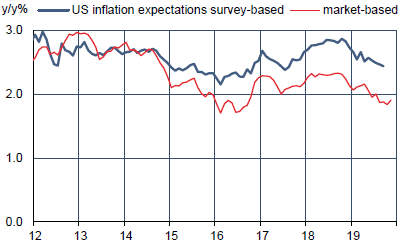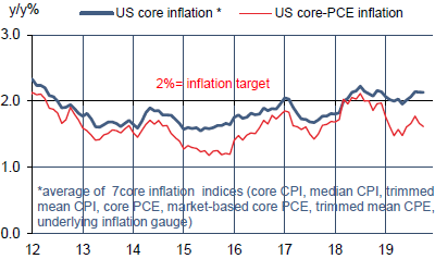 Dans les minutes des trois dernières réunions du FOMC, les références aux anticipations d’inflation n’ont jamais été aussi fréquentes depuis 2011 (à l’époque, la crainte était un dérapage vers le haut). Début 2018, la remontée de l’inflation vers la cible avait été vue comme un signe suffisant pour poursuivre, et même accélérer, les hausses de taux. La Fed n’est plus du tout dans cet état d’esprit. L’insistance sur la notion de symétrie de la cible implique qu’il faudra sans doute un dépassement durable de 2% avant que la Fed envisage de reprendre les trois baisses de taux délivrées en quatre mois. En d’autres termes, s’il n’y a plus de biais baissier vraiment apparent dans les discours des officiels de la Fed, il y a encore moins de penchant haussier.