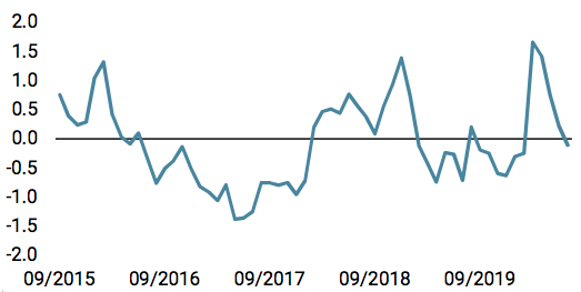 Enfin, la récente compression des spreads et leurs plus-values ont pesé sur les rendements attendus (côté valorisation). Les niveaux actuels des spreads de la catégorie investissement (inférieurs à 70 points de base dans les indices CDS américains et européens) et du haut rendement (450 points de base aux États-Unis et 340 points de base en Europe) ont historiquement rapporté 0,2% et 0,7% dans les trois mois qui ont suivi. Ce taux s’élève à 0,4% et 3% sur un horizon de 12 mois. En comparaison, les rendements attendus à la fin du mois de mars s’approchaient de 10% pour le haut rendement et de 2% pour la catégorie investissement. Même si le carry était attractif pendant la crise, nous pensons que la valorisation actuelle de ces primes de risque est insuffisante pour couvrir les risques associés au contexte macroéconomique actuel