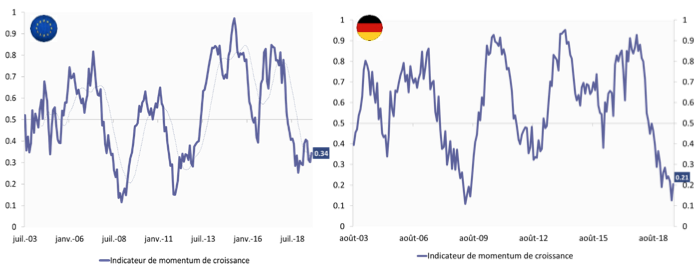 L’activité du Vieux Continent reste morose avec un MMS de Momentum Economique à 34 sur 100, dans le sillage de l’Allemagne dont le MMS de Momentum Economique est tombé à 21 sur 100, aux prises avec les difficultés de son modèle industriel très tourné vers l’exportation. La clé pour l’économie européenne reste le redémarrage du commerce mondial et donc les négociations sino-américaines. Nous serons néanmoins attentifs à la résurgence de tensions autour du Brexit, alors que la suspension du Parlement britannique par Boris Johnson rend un No-Deal Brexit de plus en plus probable le 31 octobre 2019. A l’inverse, les nuages pourraient s’éclaircir autour du dossier italien : la nouvelle coalition annoncée entre le Parti Démocrate et le Mouvement M5S devrait en effet permettre de détendre l’atmosphère au sein des autorités de l’Union Européenne après les tensions de l’ère Salvini… jusqu’au prochain coup de théâtre!