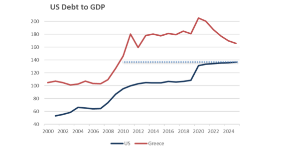 En conséquence, le déficit public bat de nouveaux records, avec un ratio Dette/PIB qui atteint déjà aux USA le niveau auquel se trouvait la Grèce en 2008! Et la situation n’est pas meilleure dans les autres pays, à l’image de la France, qui approche de la barre des 120%, et même de la vertueuse Allemagne, qui a dépassé allègrement la barre des 60% imposée par l’eurozone.