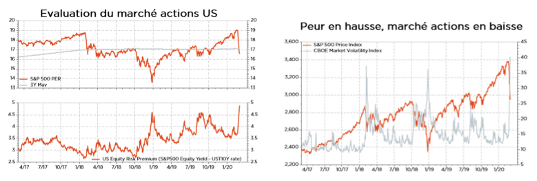 Les marchés financiers anticipent déjà une récession, avec des rendements américains de long terme au plus bas historiques et des marchés actions en fort recul. L’anxiété pourrait persister quelques jours ou semaines, mais guère plus longtemps dans la mesure où il y aura de la lumière au bout de ce tunnel. Les valorisations des actions, notamment par rapport aux obligations d’État, finiront par devenir suffisamment intéressantes pour attirer quelques courageux investisseurs dont l’horizon temporel dépasse la saison habituelle de la grippe.